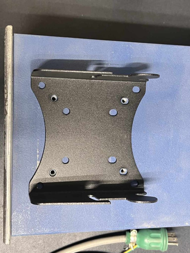 コントローラの上面にM6用タップ穴が4つ開いています。縦横とも75mmピッチとなっており、ご存じの方も多いと思いますが液晶モニターやTVなどを壁掛け金具やモニターアームなどに取り付けるVESA規格に対応しています。(たまたまだと思いますが)となるとAmazonなどで沢山の種類が販売されているので、今回は脱着可能でチルト式を選んでみました。